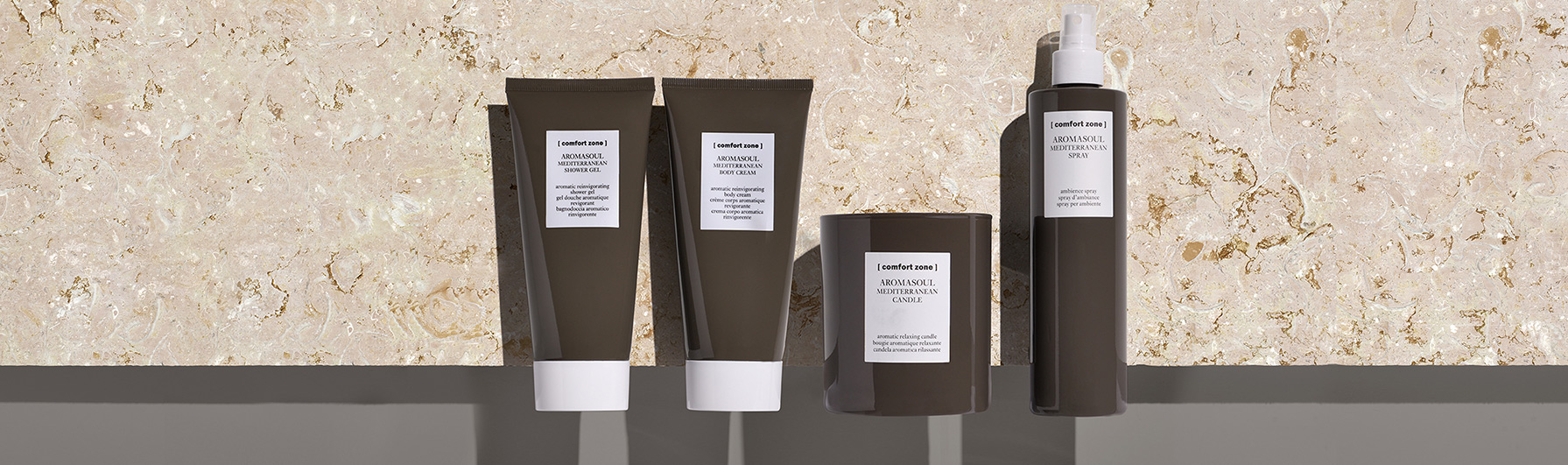 Per i nostri clienti abbiamo scelto la linea cortesia Aromasoul [comfort zone] linea unisex aromaterapica, delicata arricchita con principi naturali attivi e oli essenziali ad azione cosmetica protettiva e rinvigorente. Dona una sensazione rigenerante di vitalità e benessere. Deterge rilasciando una profumazione dai toni evocativi dei paesi mediterranei.